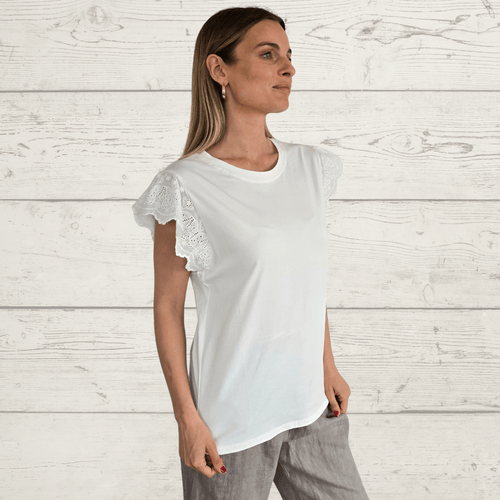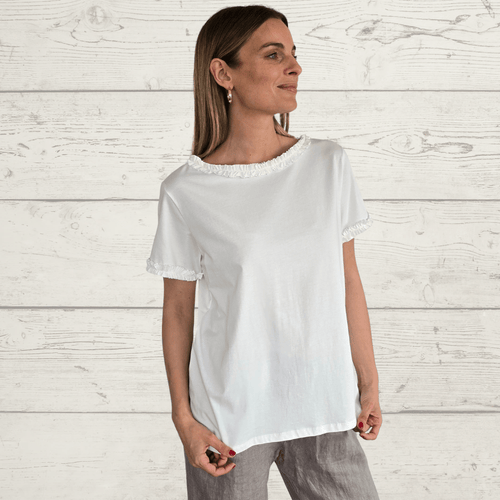 Blusa 100% Lino Italiano Bordada, color Blanco