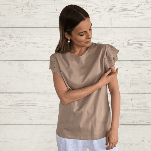 Blusa Italiana sin mangas desflecada, color Chocolate