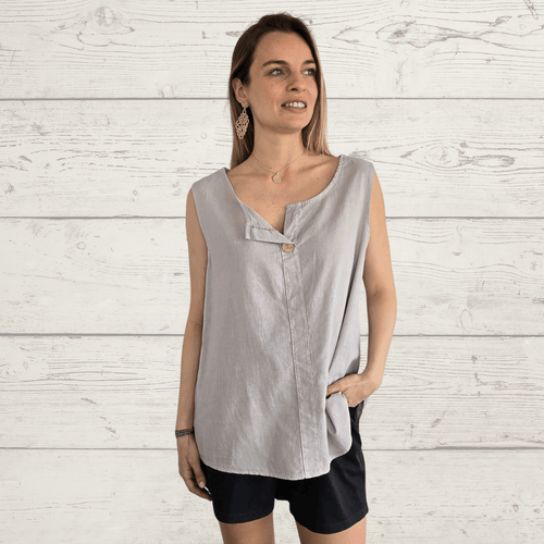 Chaqueta blazer de lino Italiano sin manga, color blanco