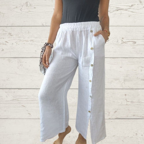 Pantalón de Lino Italiano con botones a un lado, color blanco