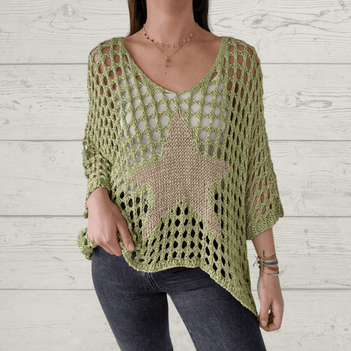 Sweater Italiano estrella, color pistacho con taupe