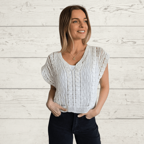 Sweater sin mangas tejido crochet, color Blanco
