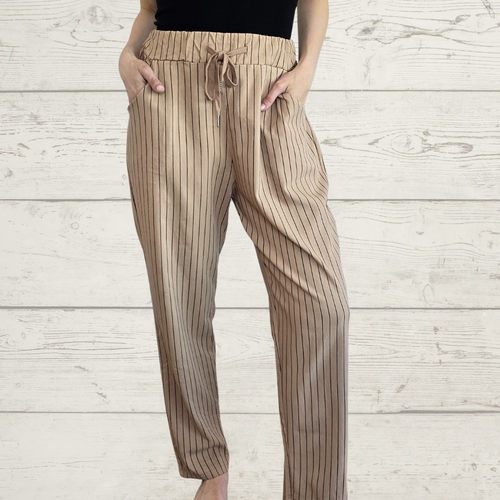Pantalón Jogger Italiano Rayado, fondo Taupe con Blanco
