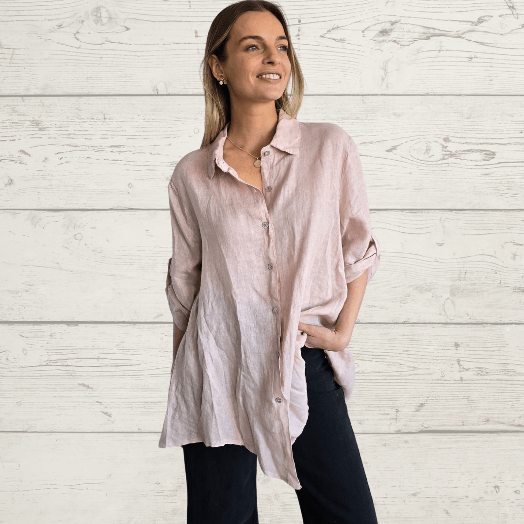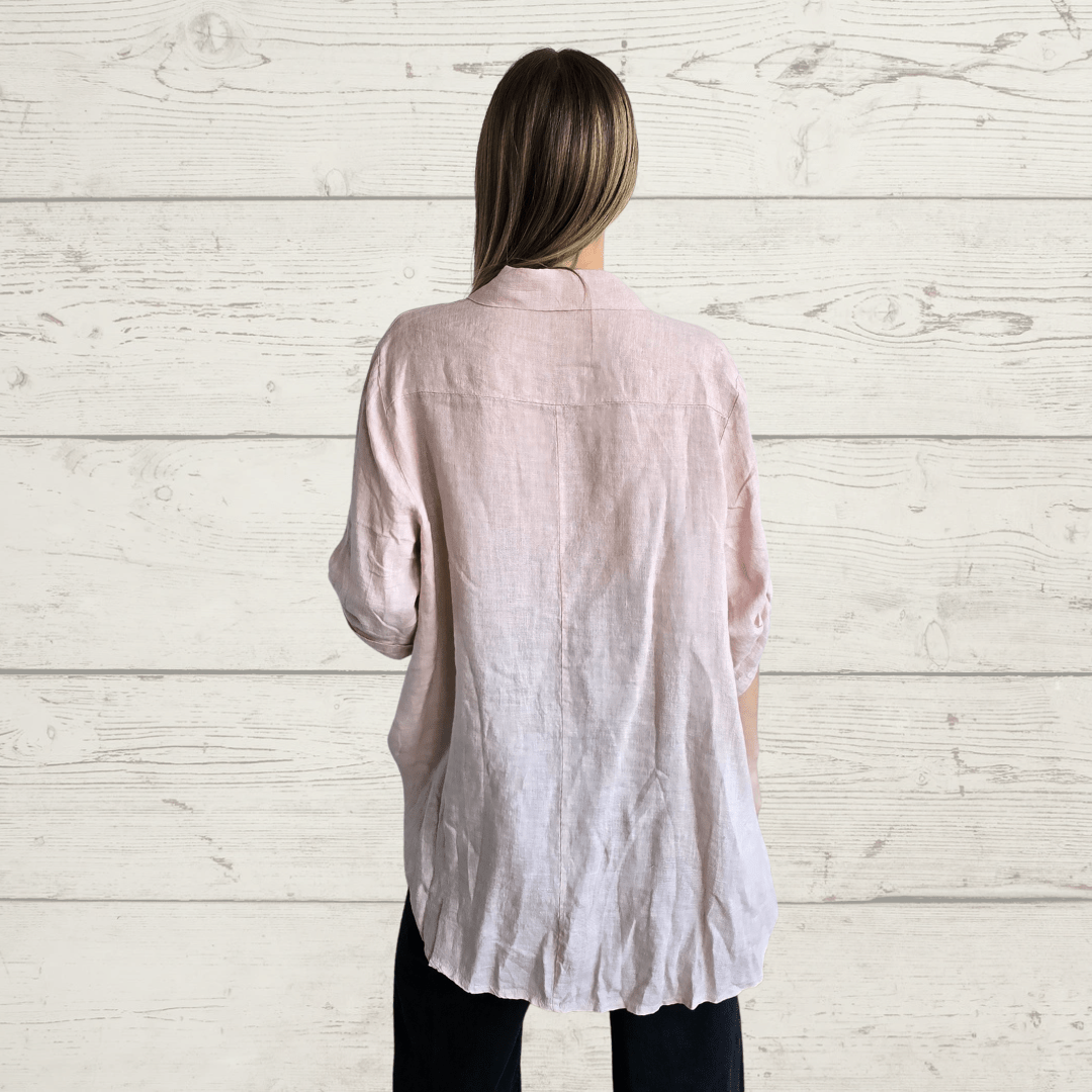 Blusa 100% de Lino Italiano, manga 3/4, abotonada, color rosado