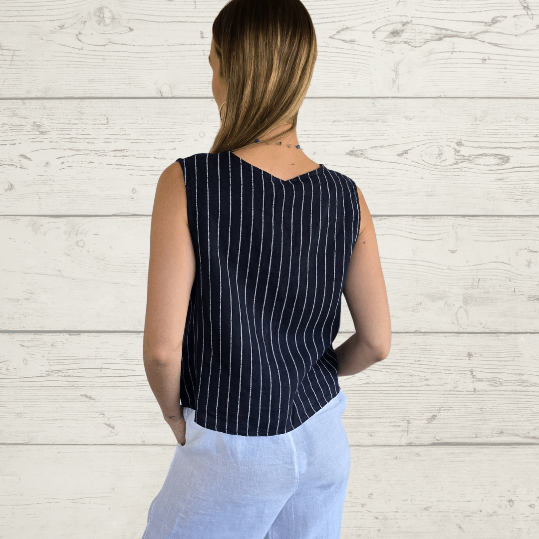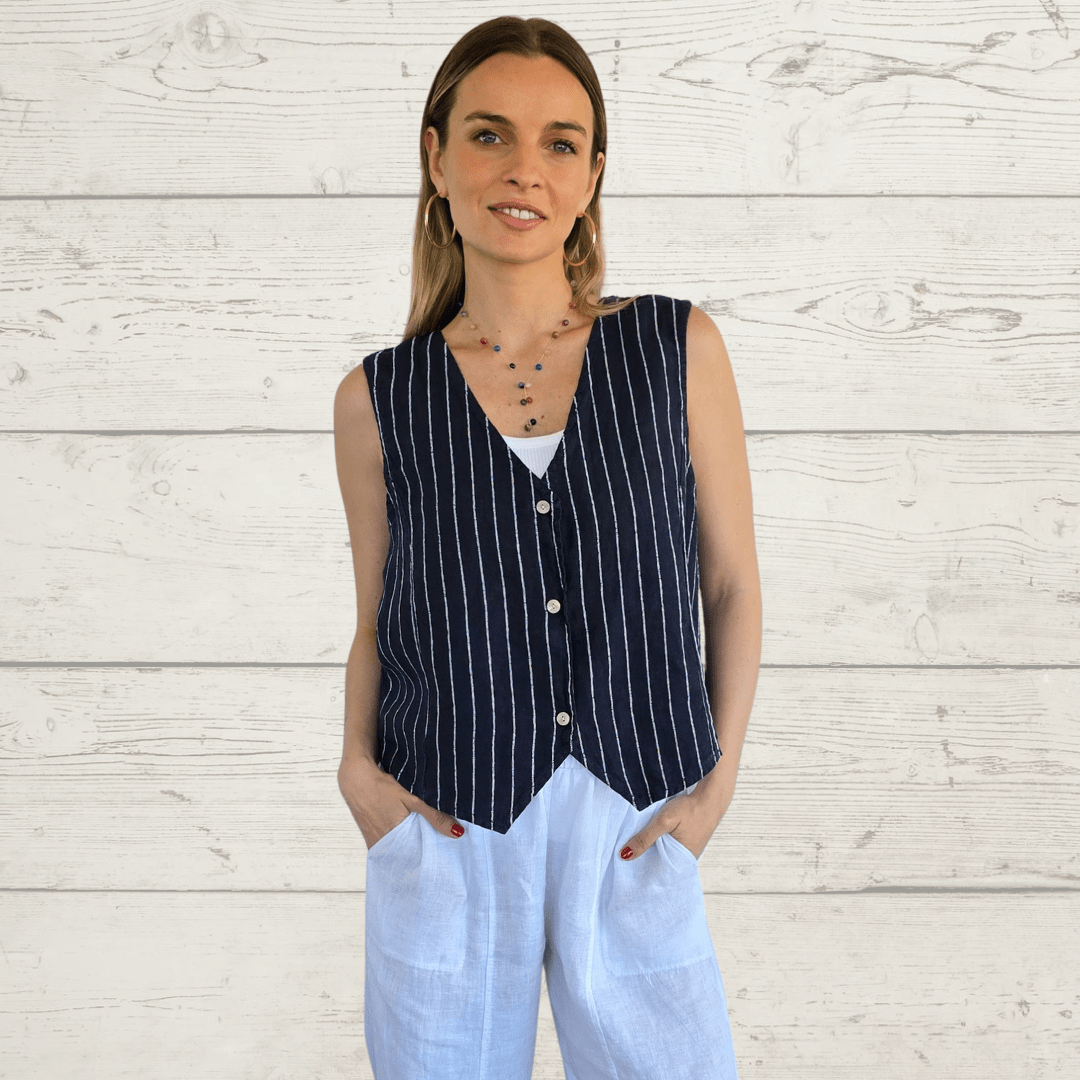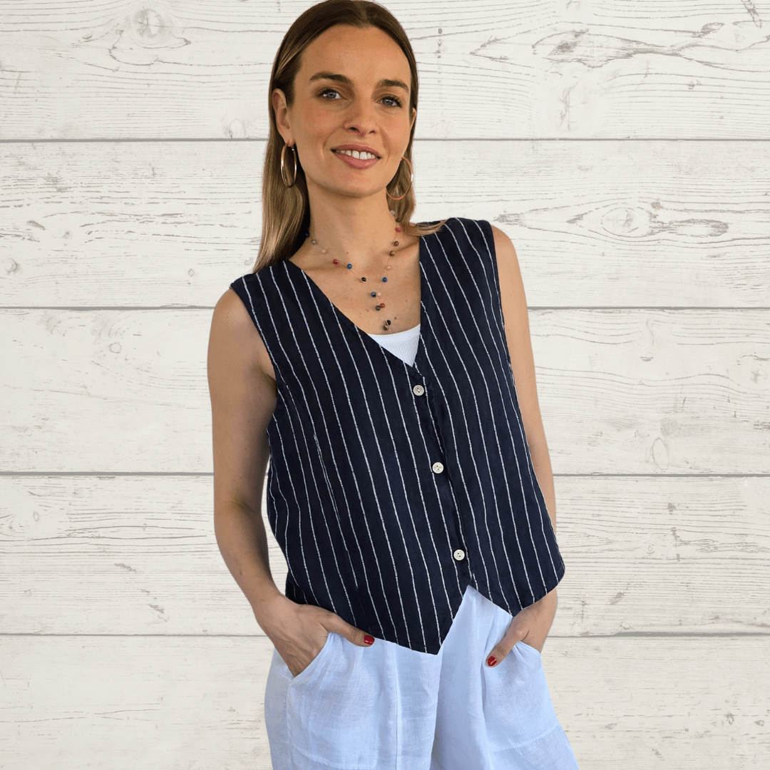 Gillette italiano 100% lino, rayado, color azul marino con blanco