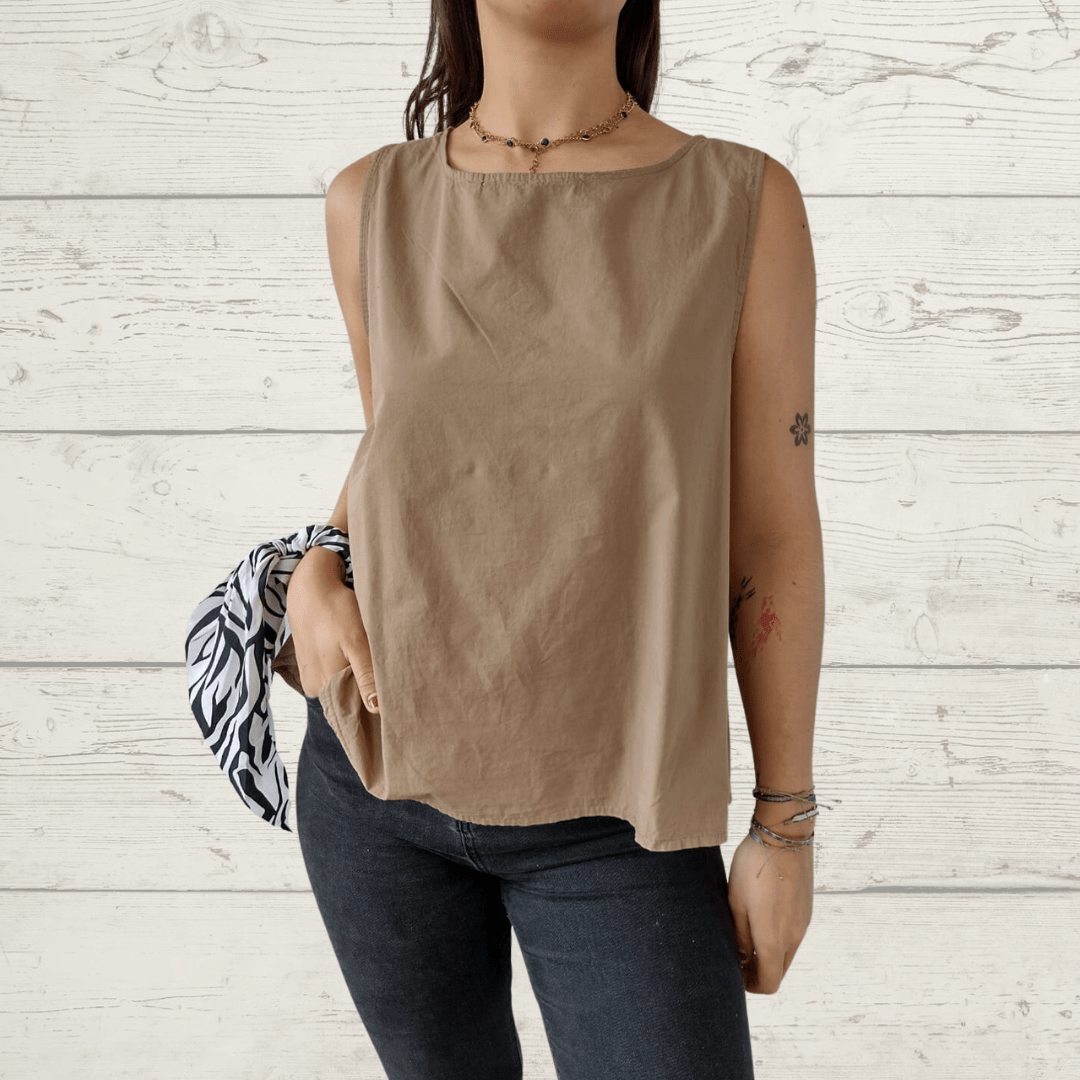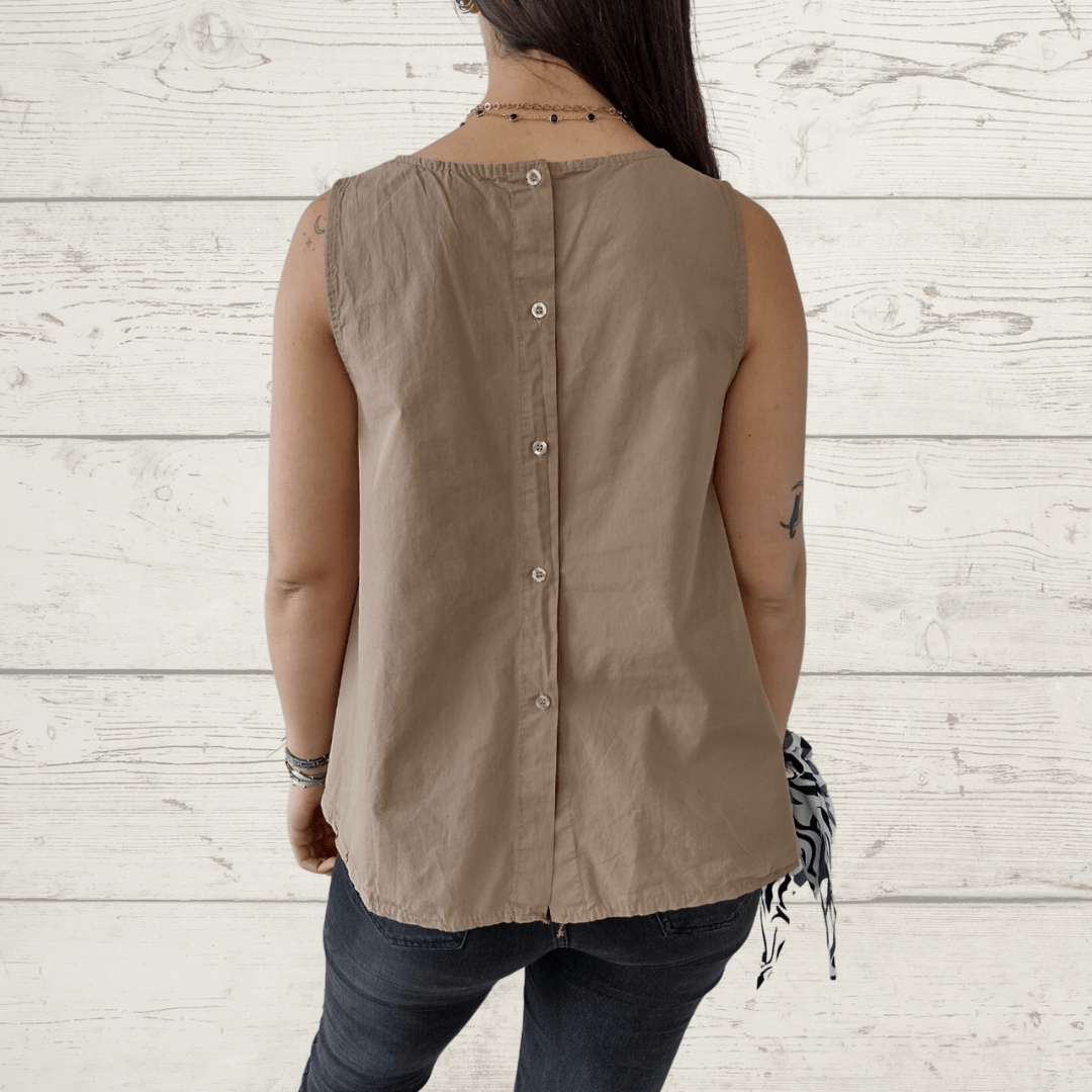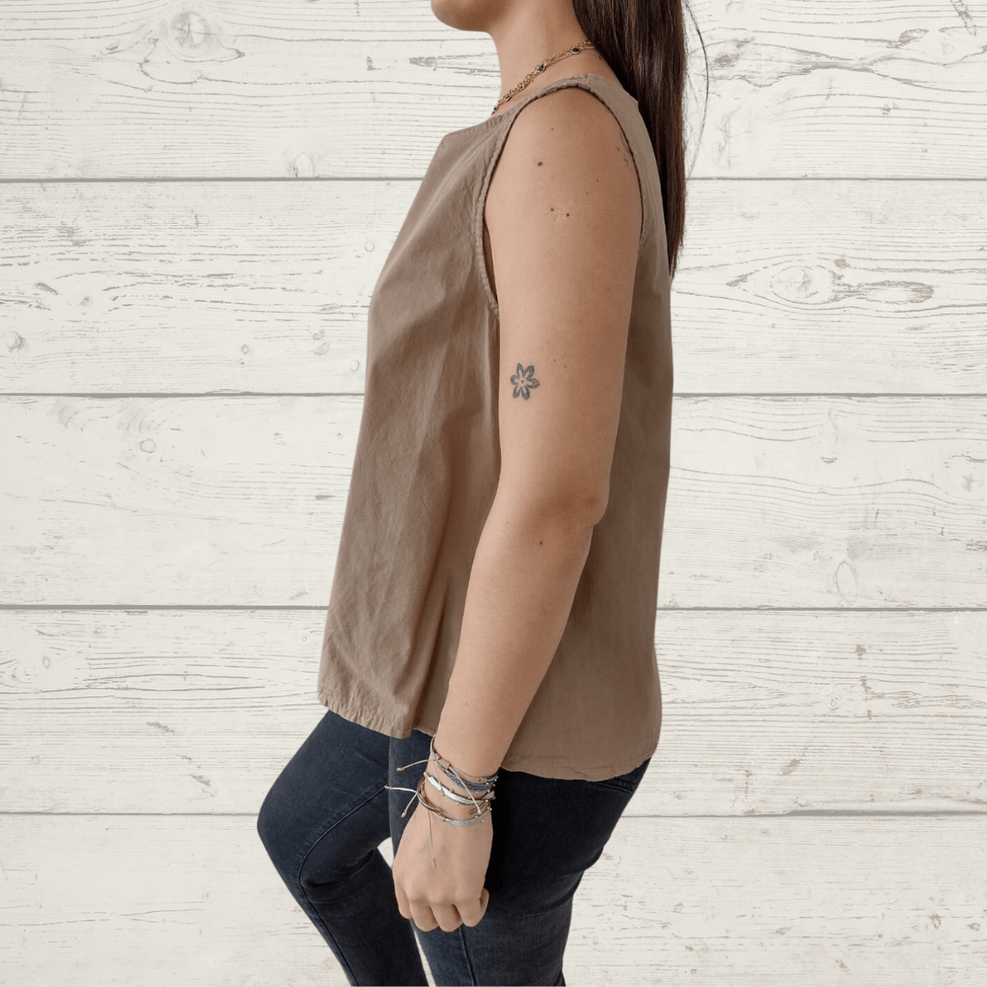 Blusa Italiana de algodón, sin mangas con botones en la espalda, color tostado