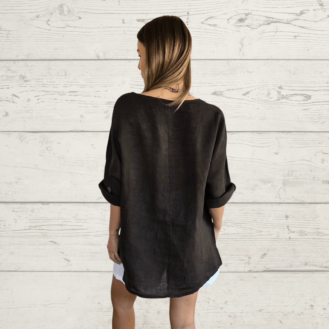 Blusa Italiana Verona 100% Lino, color Chocolate