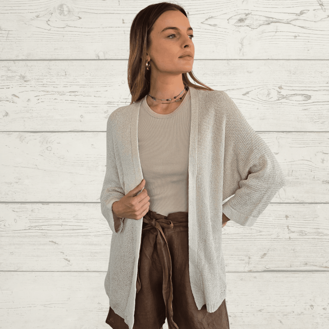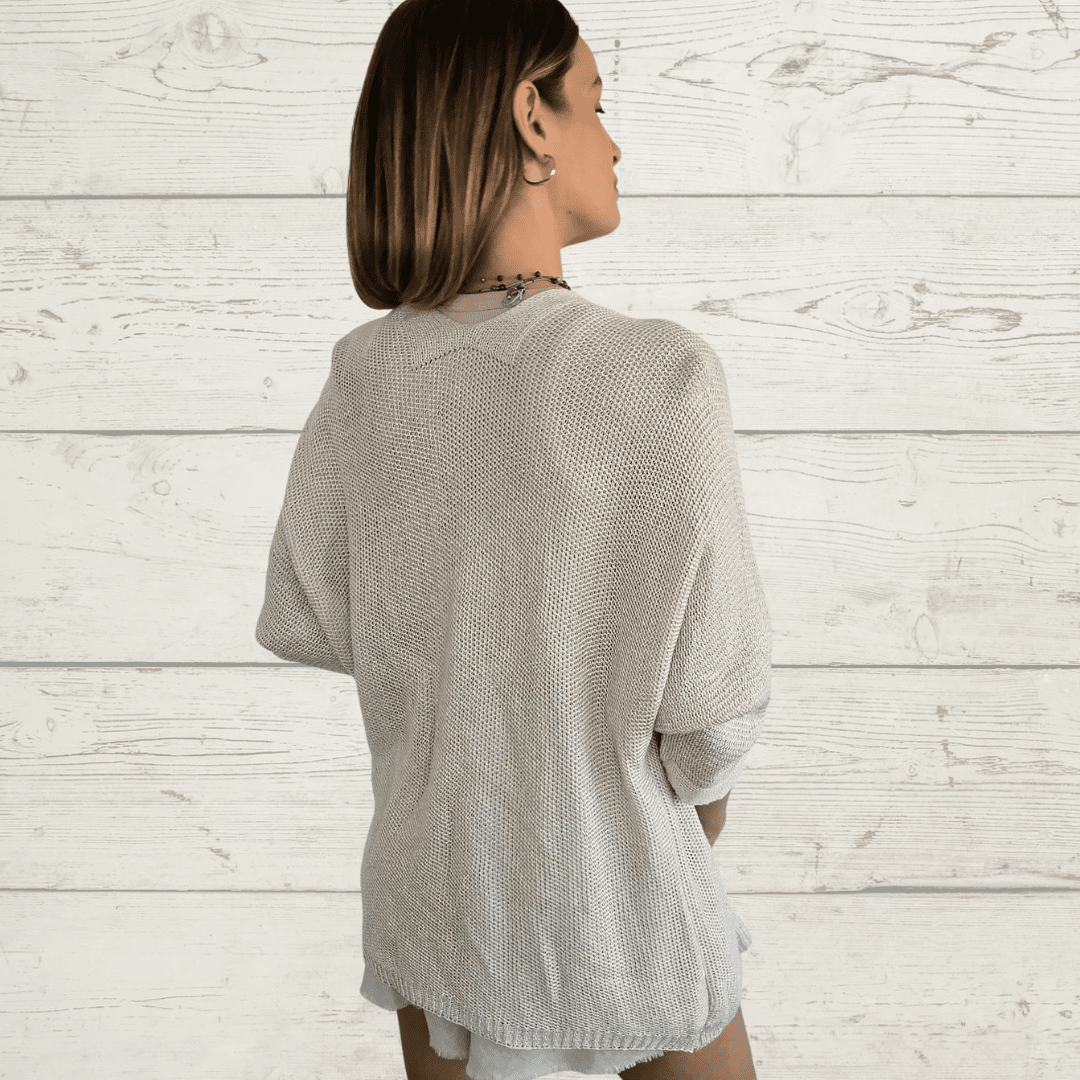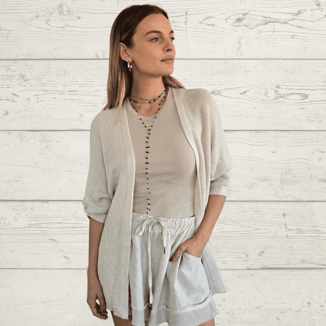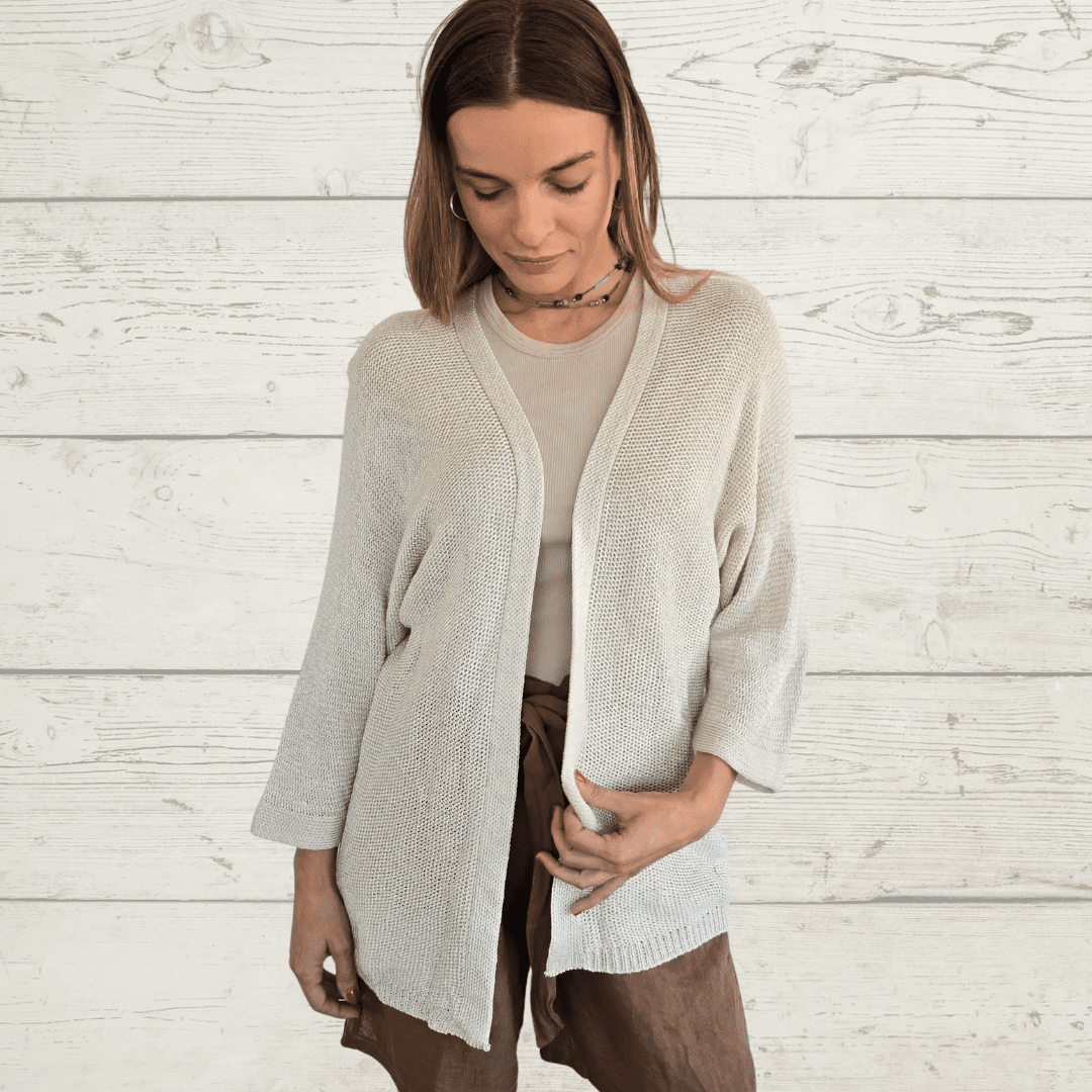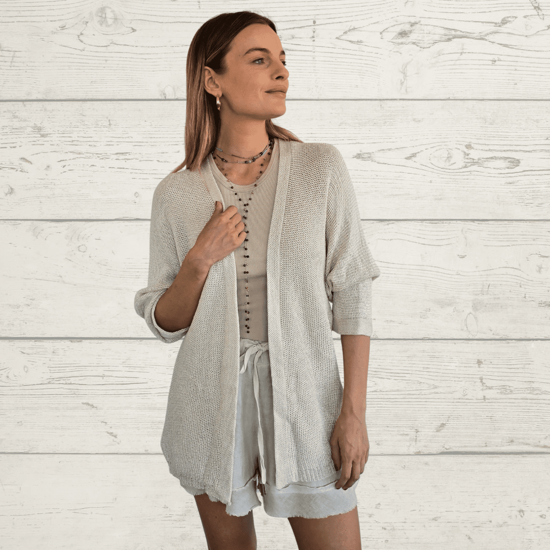 Chaleco Andora italiano , manga larga, de hilo, color Beige