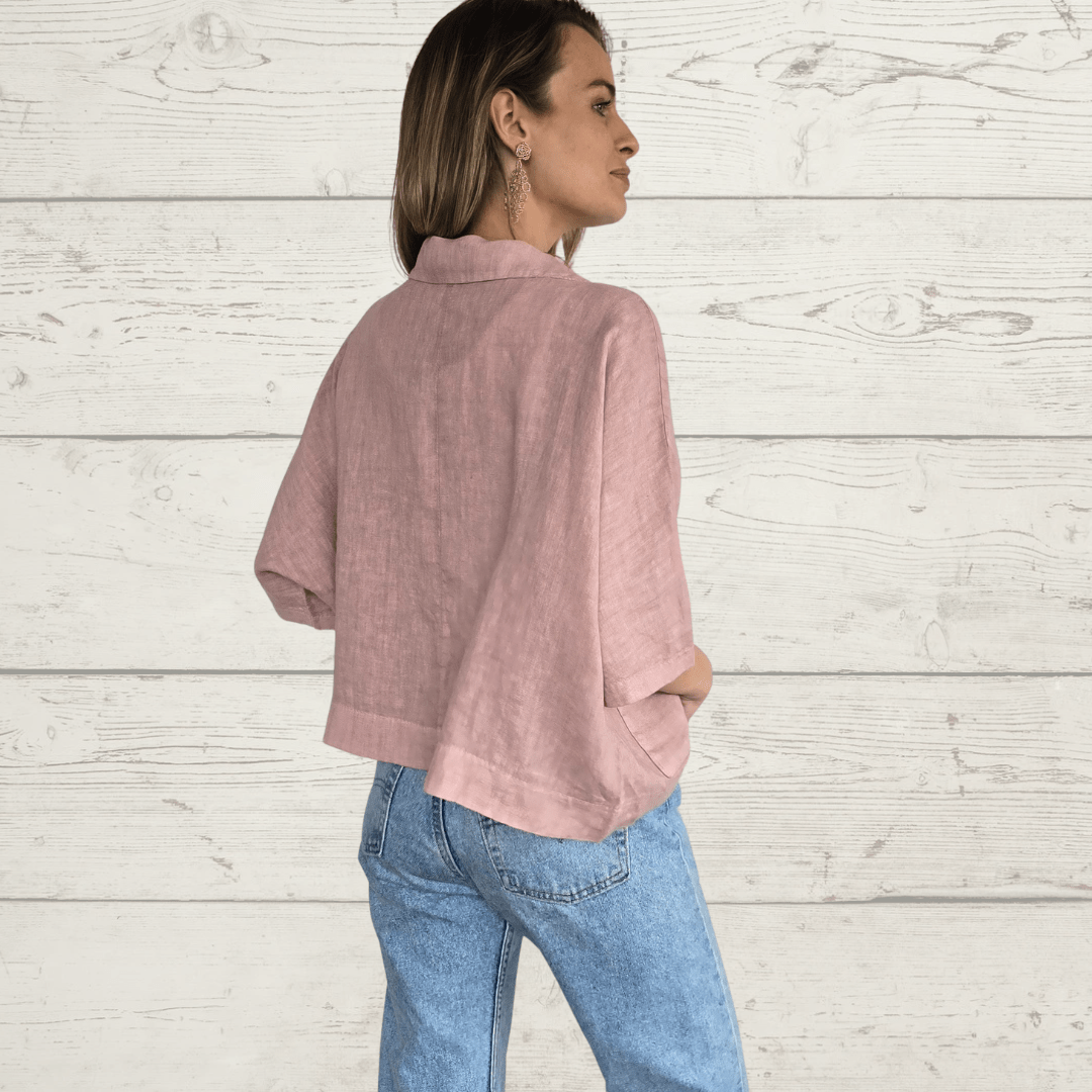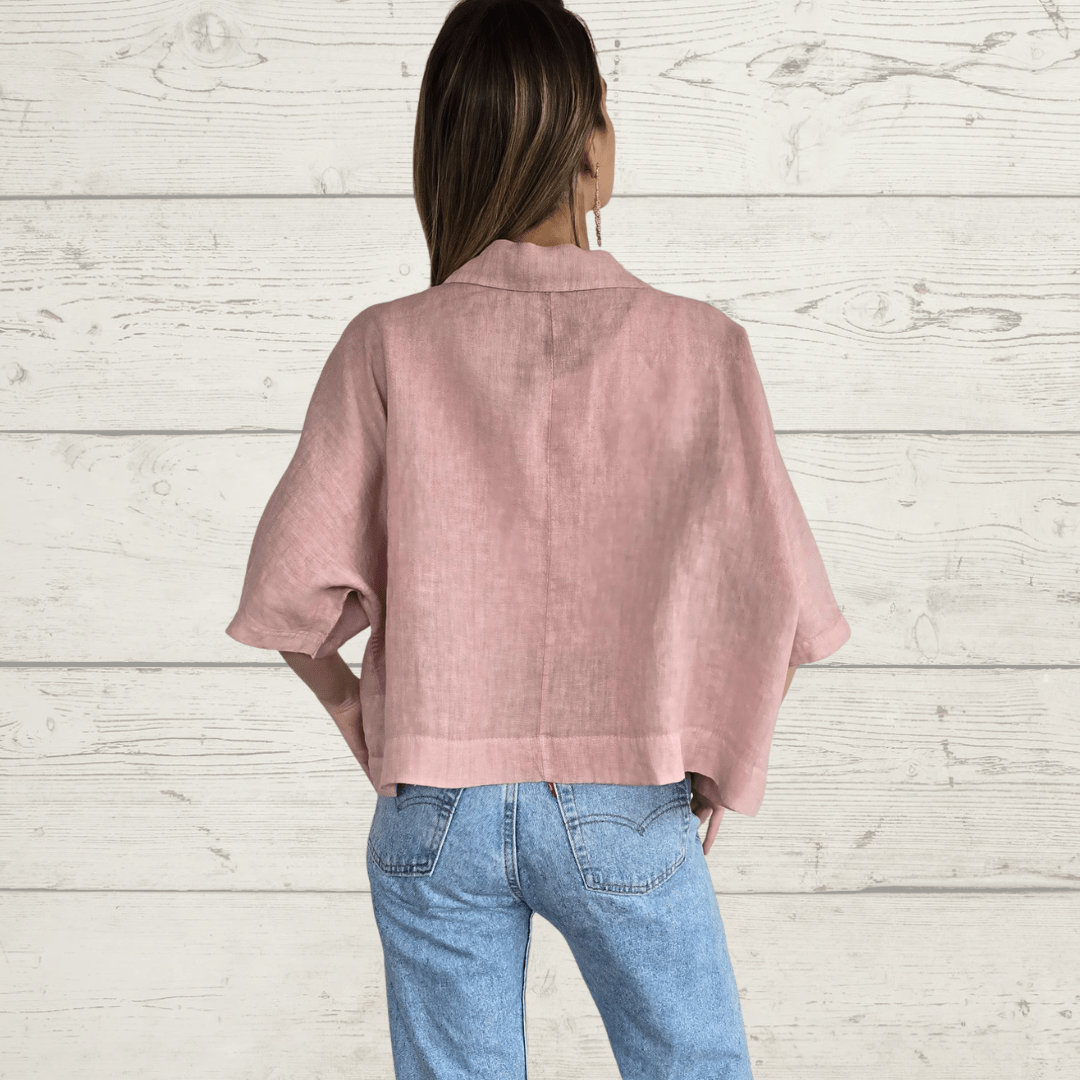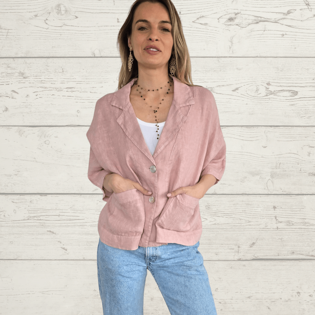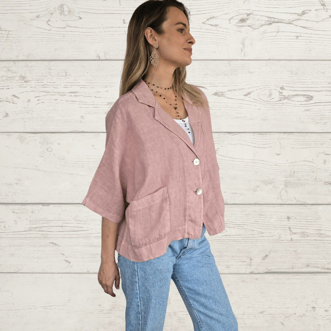 Chaqueta 100% lino italiano dos botones , manga 3/4, con bolsillos, color rosado
