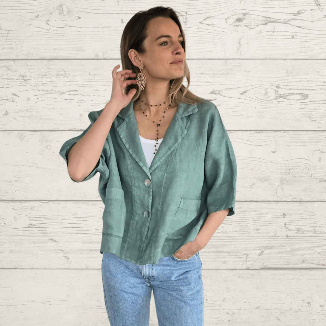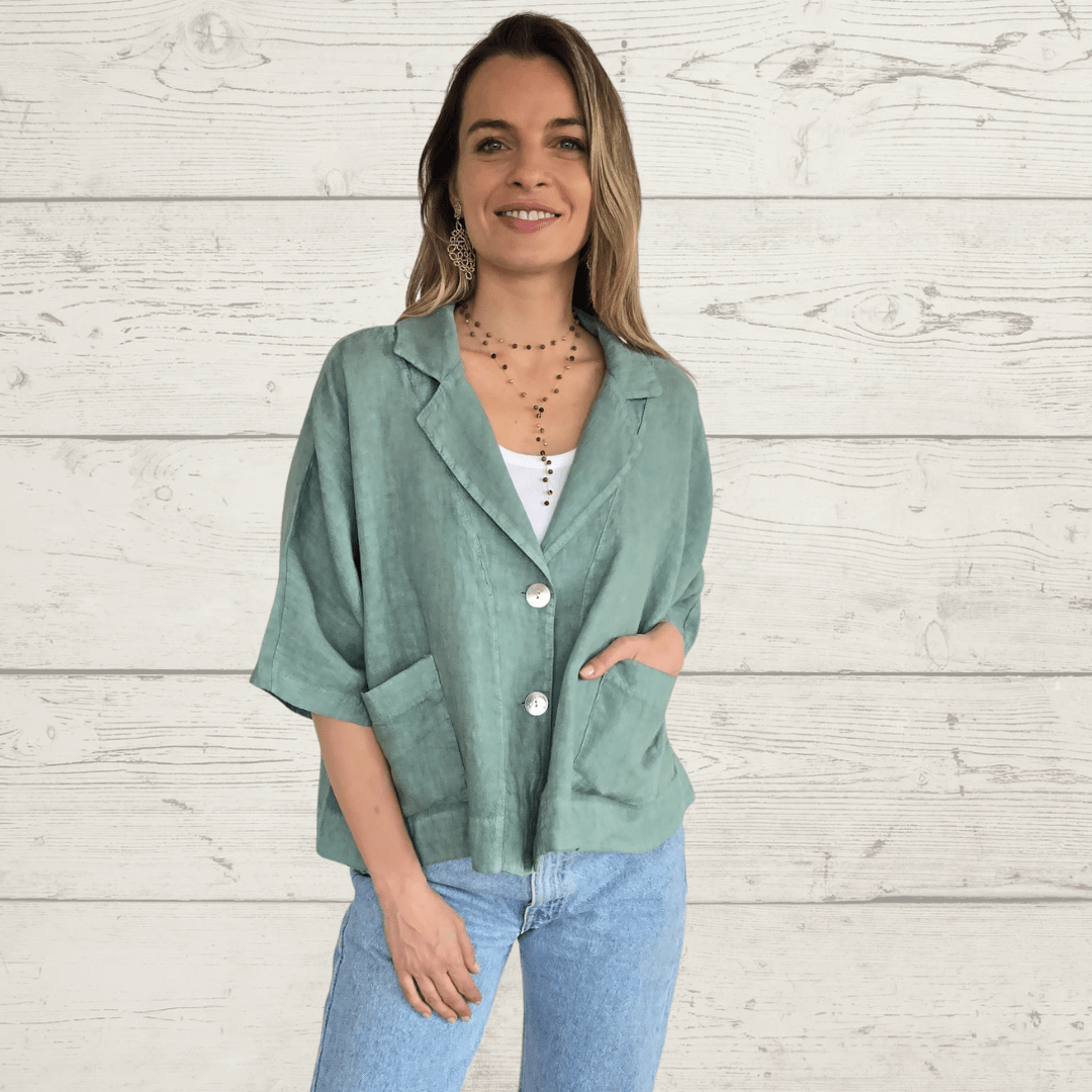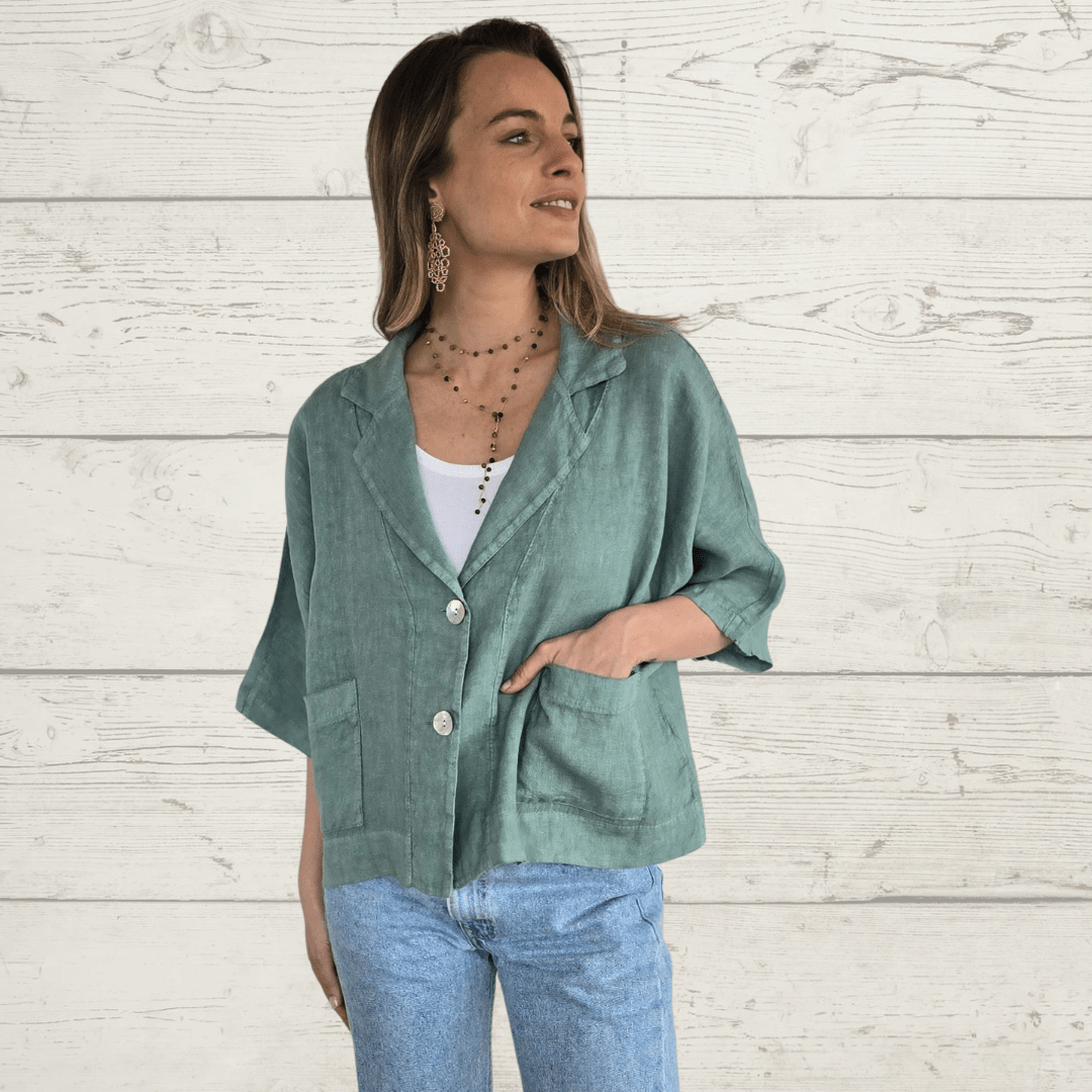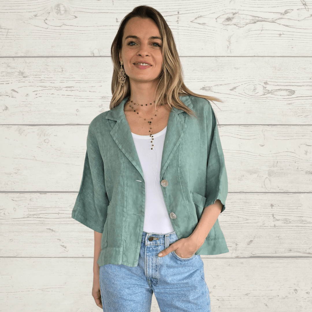 Chaqueta 100% lino italiano dos botones , manga 3/4, con bolsillos, color verde