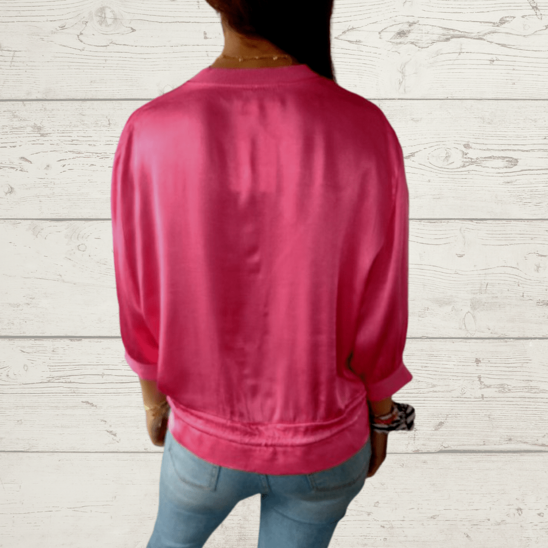 Chaqueta Italiana de raso, con cierre, amarra en la cintura, color fucsia