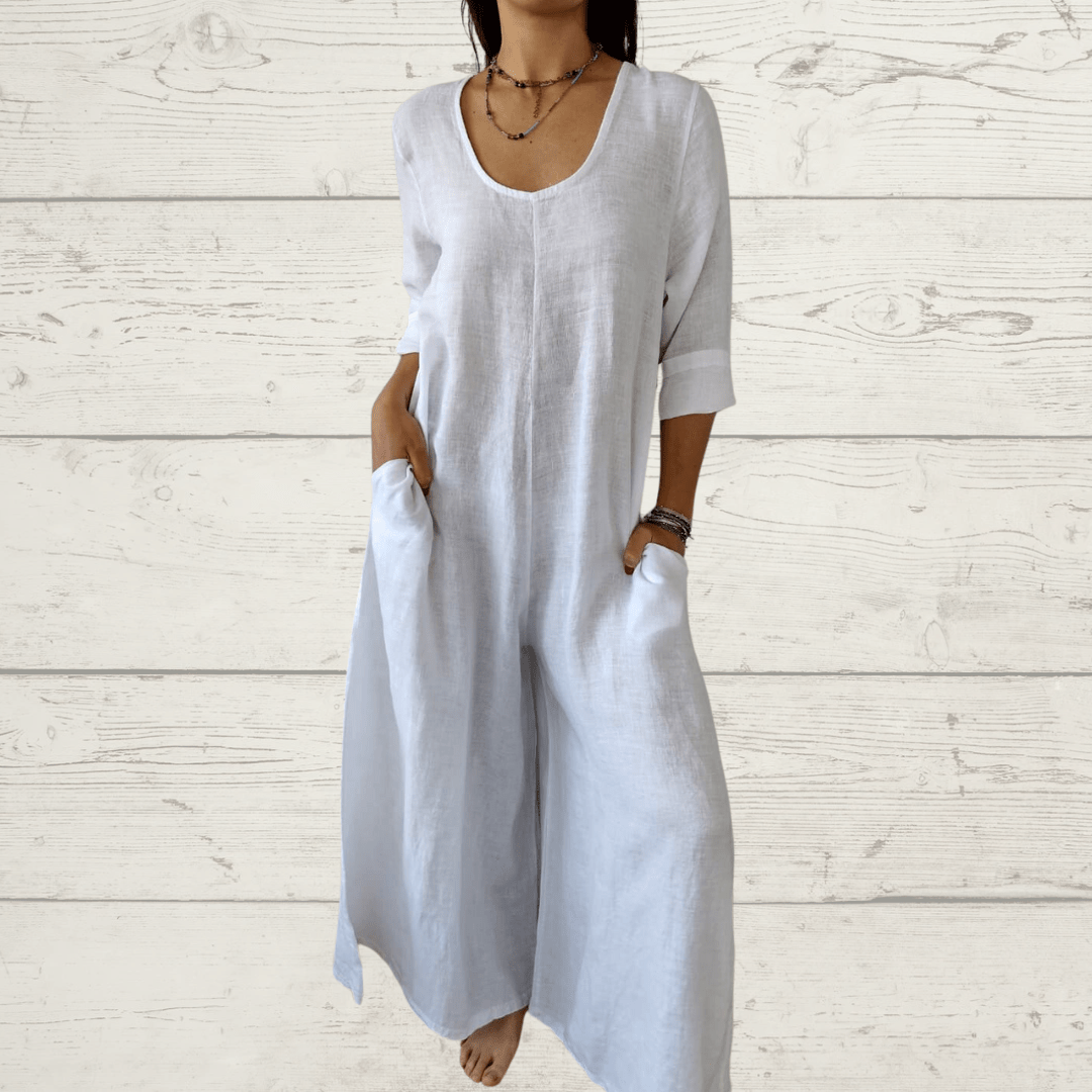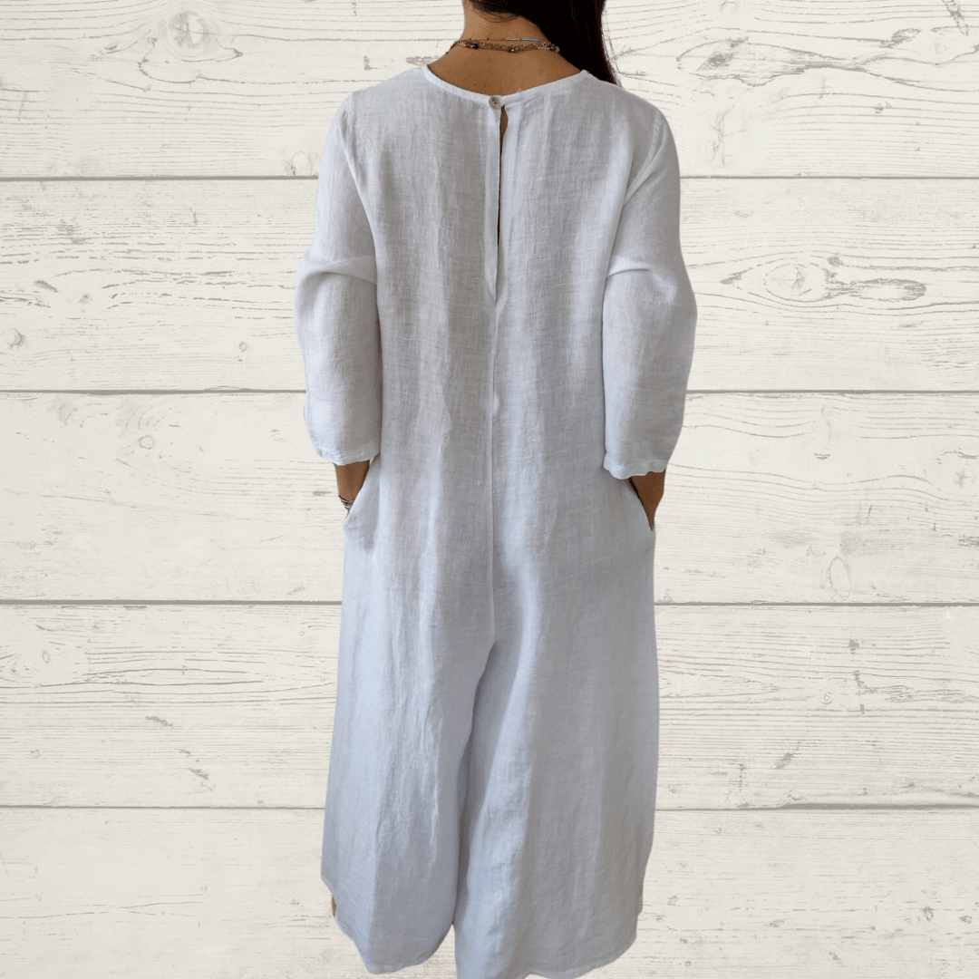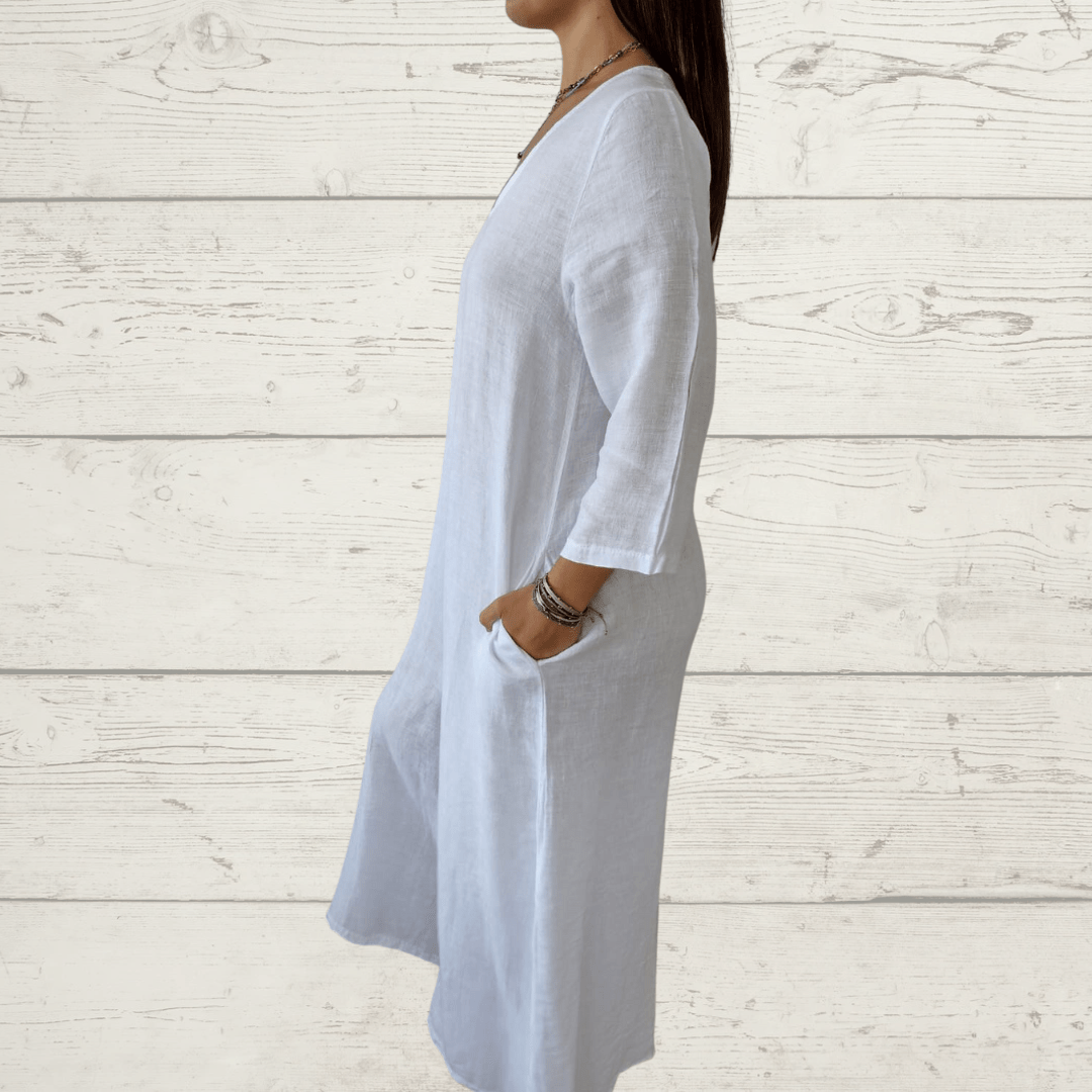 Enterito 100% Lino Italiano, ancho, manga 3/4, con bolsillos a los lados, color blanco