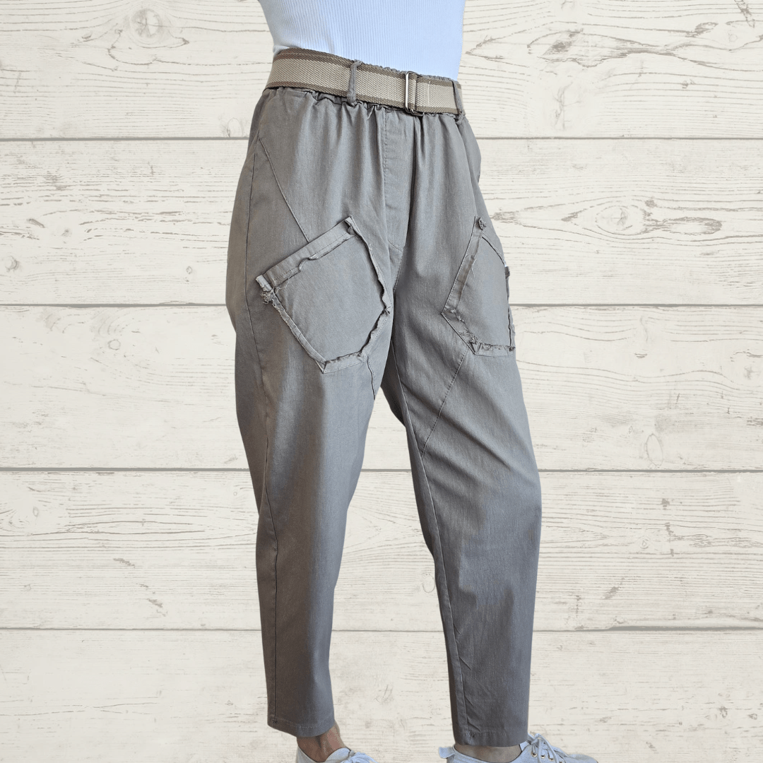 Pantalón Jogger Italiano dos bolsillos desflecados, color Taupe