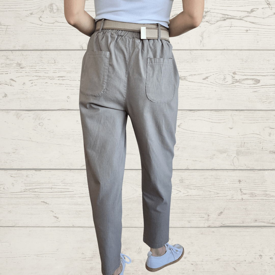 Pantalón Jogger Italiano, con cinturón rayado, dos bolsillos delantero y dos bolsillos espalda , de algodón con spandex, con cordón en la cintura, color taupe