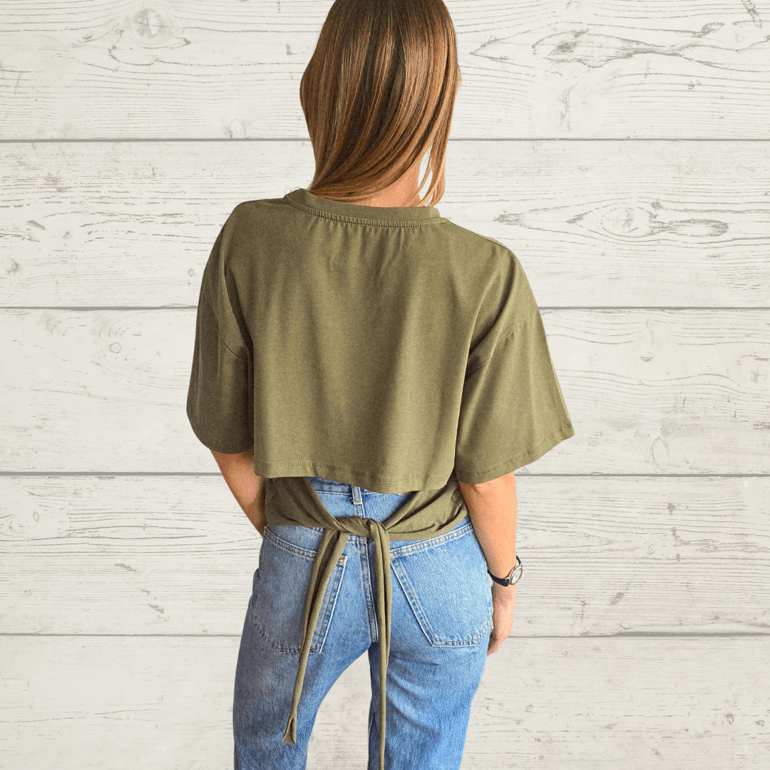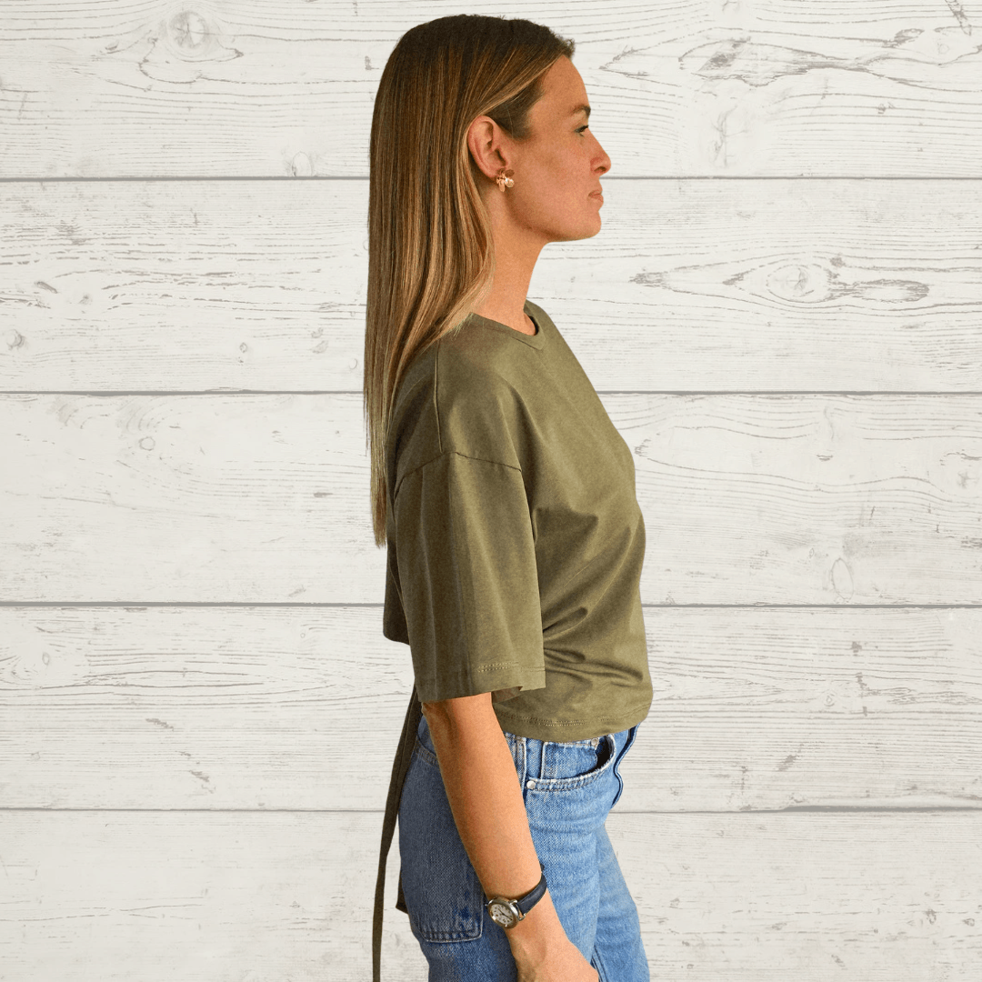 Polera Italiana , de algodón con spandex, con lazo en la espalda, manga 3/4, color verde