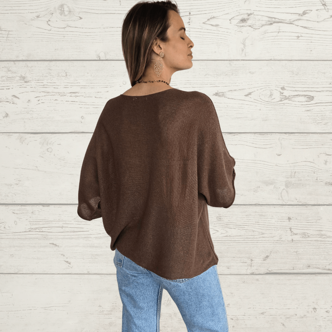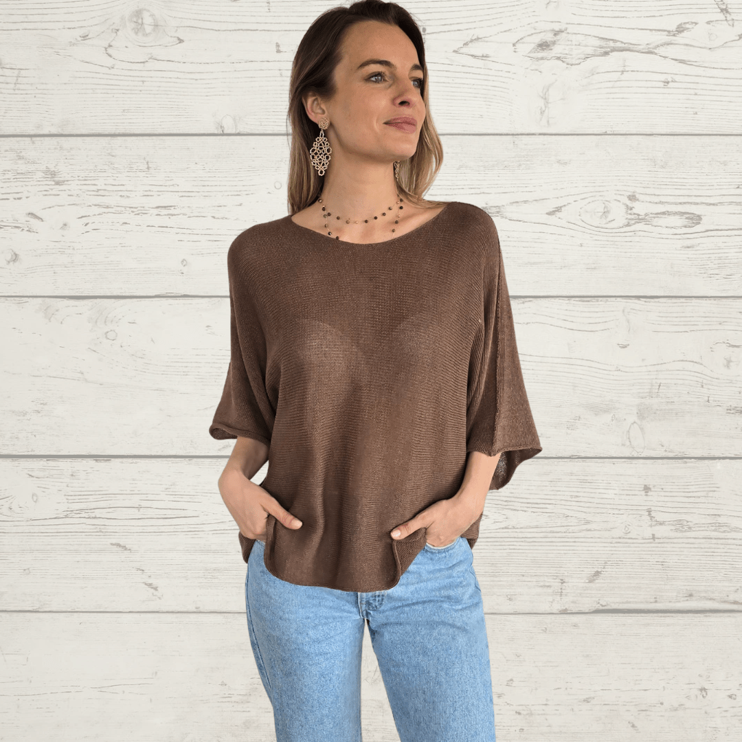Jersey italiano, manga 3/4, básico, de algodón con viscosa, color chocolate