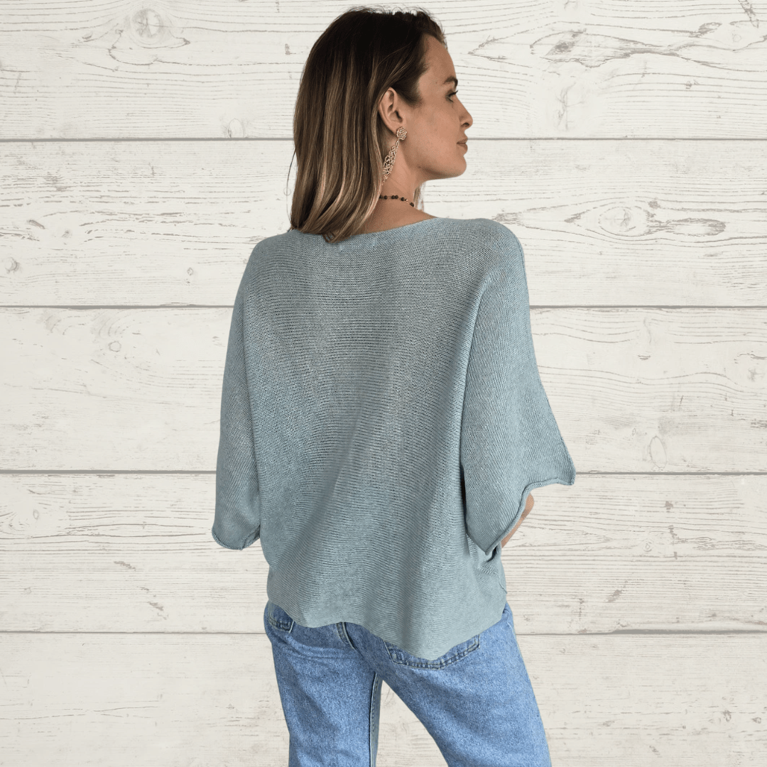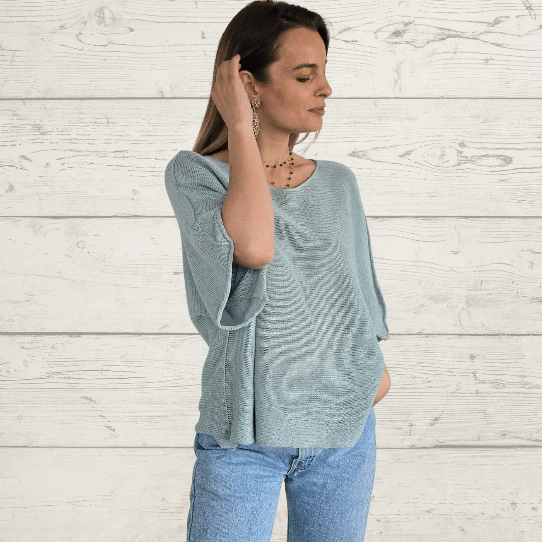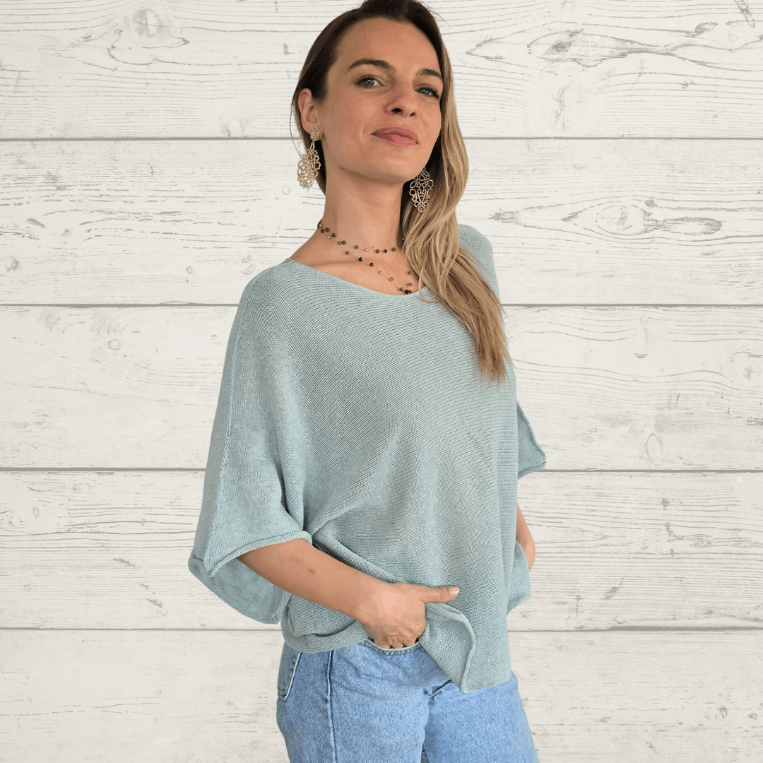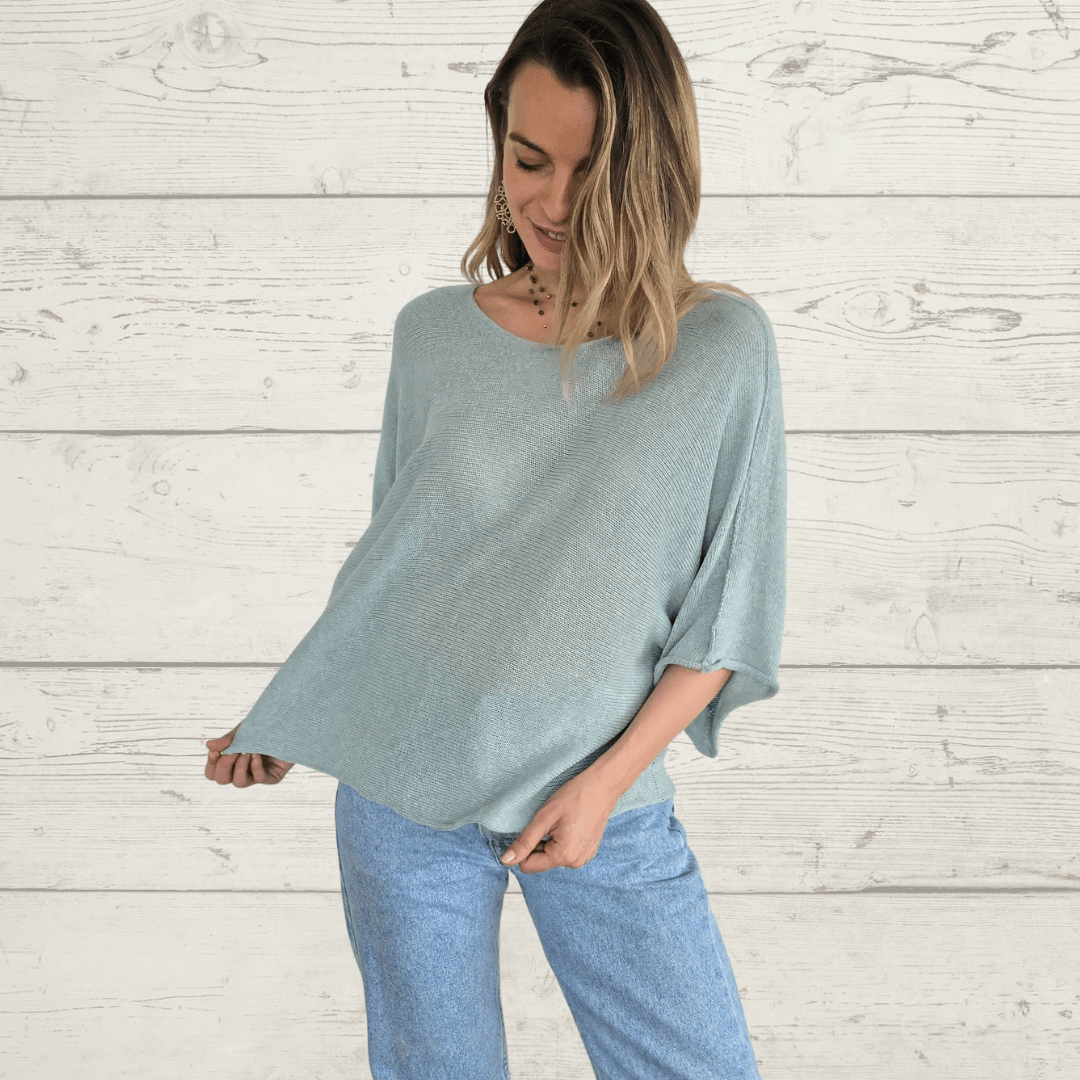 Jersey italiano, manga 3/4, básico, de algodón con viscosa, color verde menta