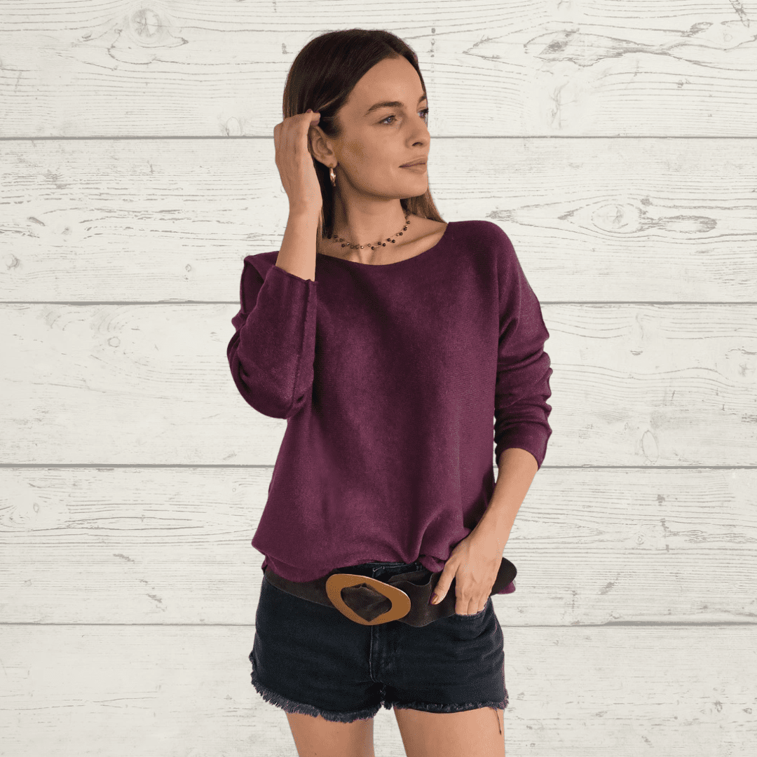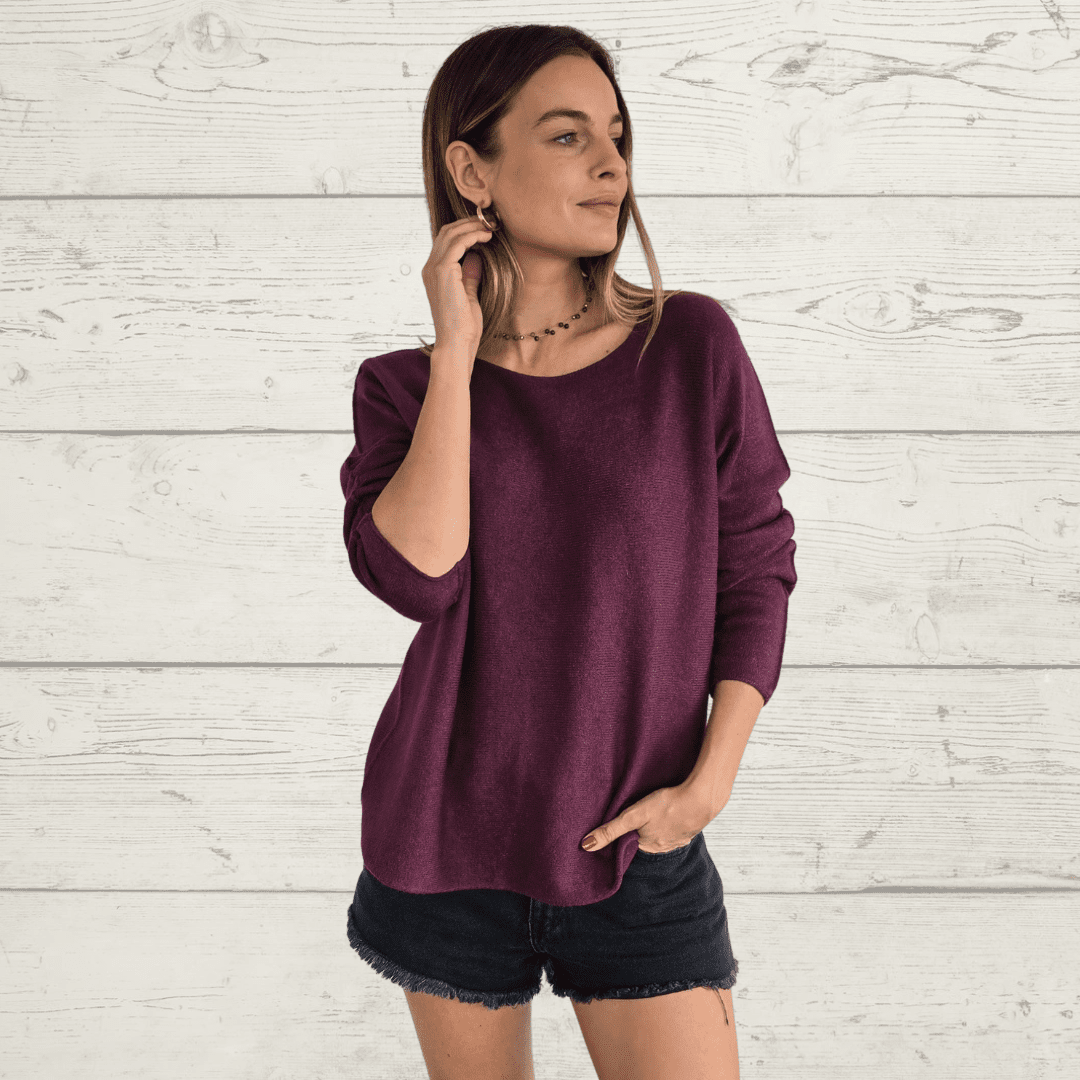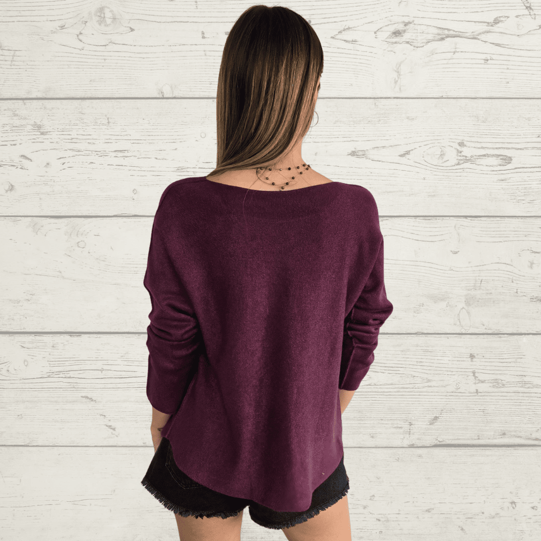 Sweater italiano básico, manga larga, cuello redondo, de poliviscosa con spandex, , color vino