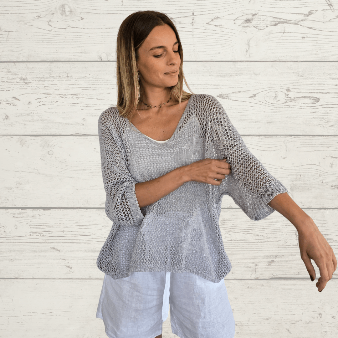 Sweater Italiano , de hilo con flores, color gris