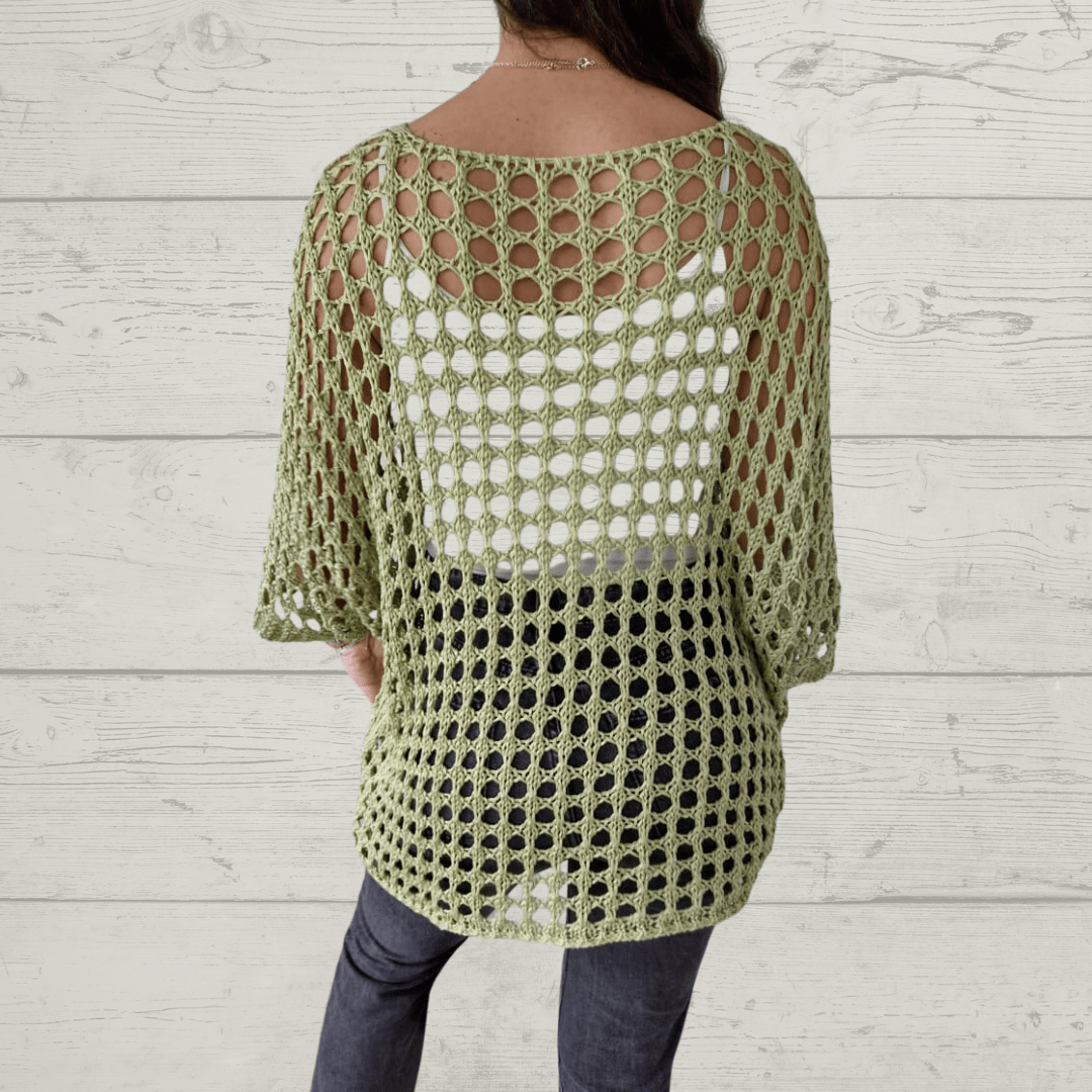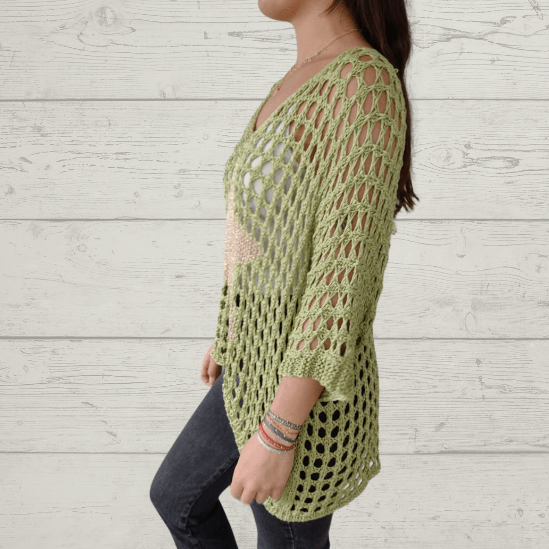 Sweater Italiano de hilo, estrella con dorado, color pistacho con taupe