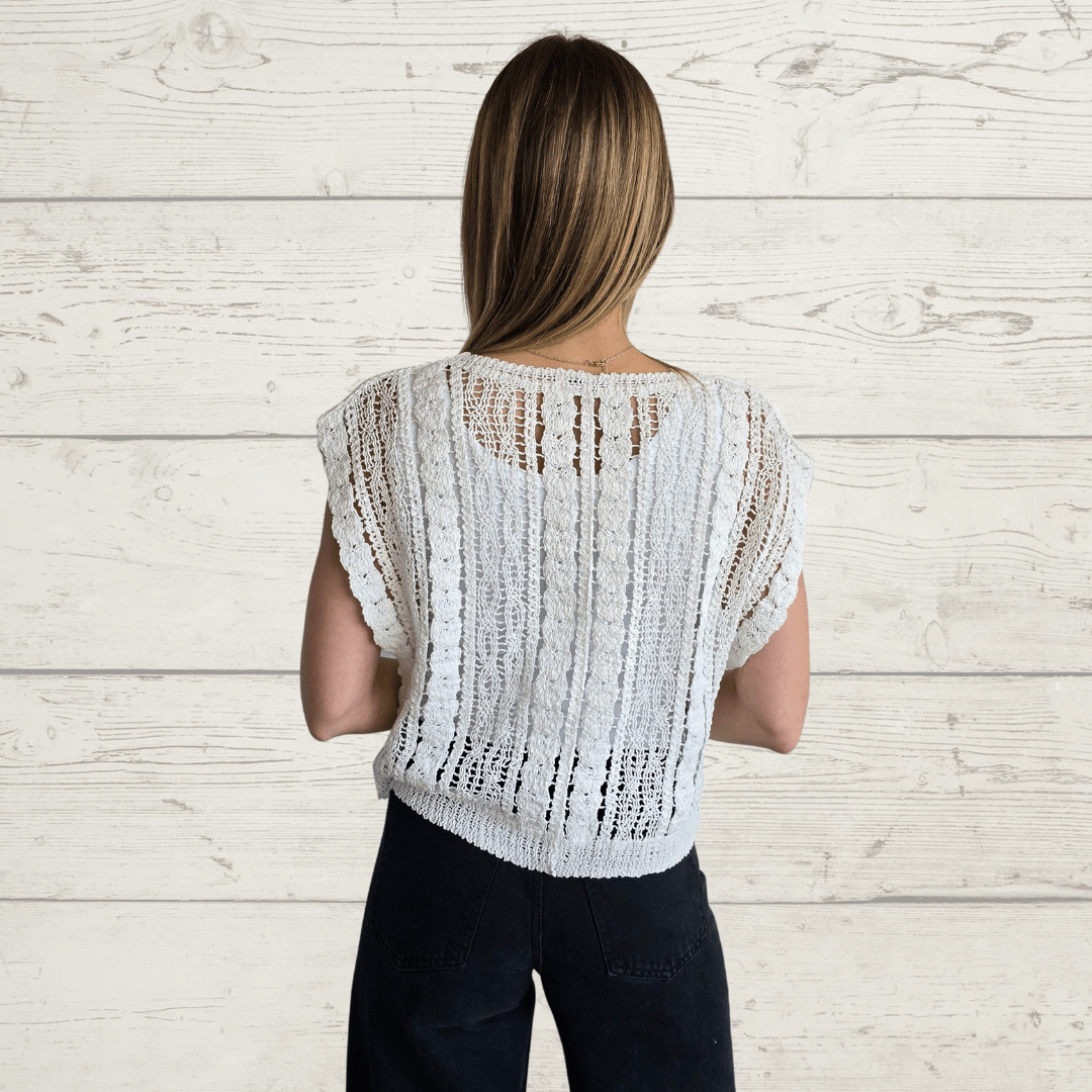 Jersey sin mangas tejido tipo crochet, de algodón, escote en V, color blanco