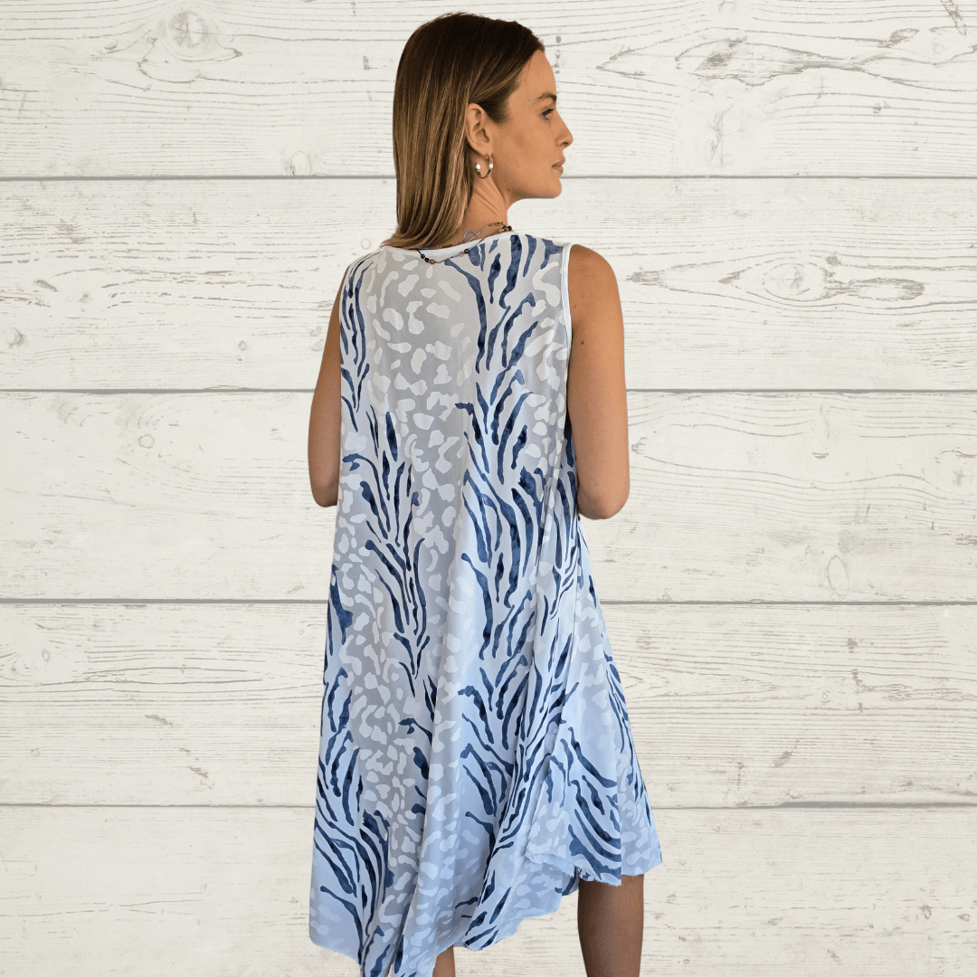 Vestido Sicilia italiano de viscosa, estampado manchas, , fondo blanco